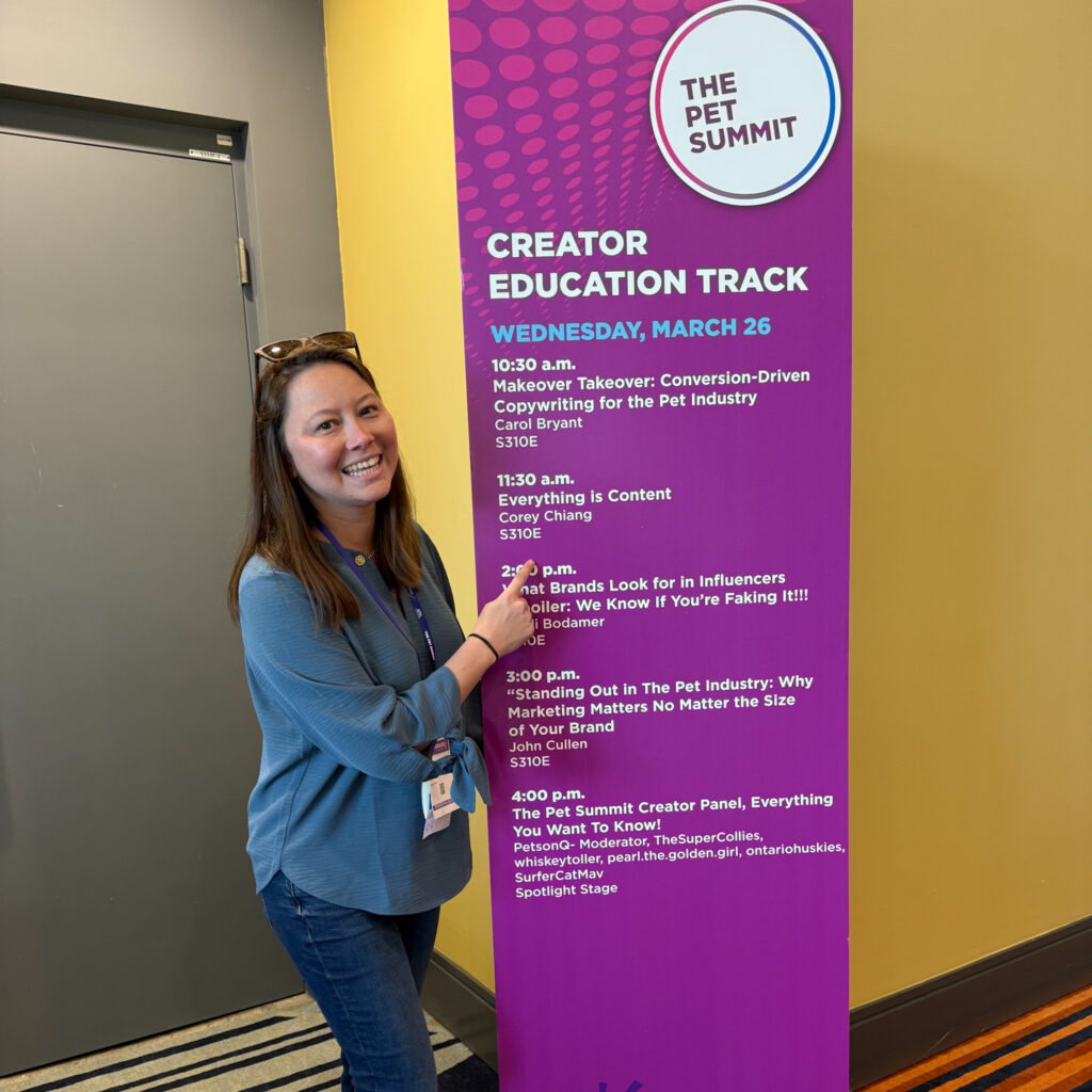I have been a speaker for the Pet Summit 3 times and in 2025 spoke in person during their Global Pet Expo event in Orlando. Where I also had the pleasure of seeing my portraits on display at the Stella and Chewy’s booth and Small Batch booth.